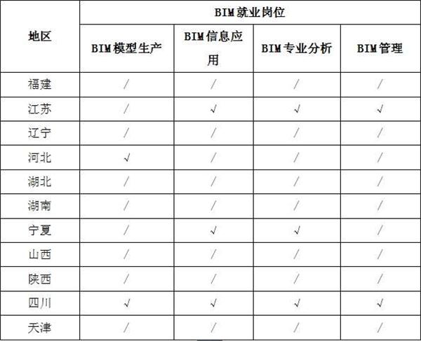 3、就業(yè)崗位分布。從11個(gè)省市的BIM就業(yè)崗位分布來(lái)看,不同地區(qū)的企業(yè)對(duì)BIM人才的崗位需求也各不相同,BIM技術(shù)應(yīng)用發(fā)達(dá)的地區(qū)更需要能將BIM技術(shù)與生產(chǎn)過(guò)程融合的復(fù)合型人才,不局限于BIM建模工作,例如江蘇省企業(yè)招聘的人員以BIM信息應(yīng)用,BIM專業(yè)分析和BIM項(xiàng)目管理為主。
